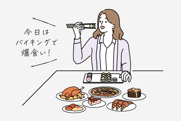 バイキングなどの“だらだら食べ”も、食事の総量が増え、血糖値が高い状態が続いてしまうため要注意!