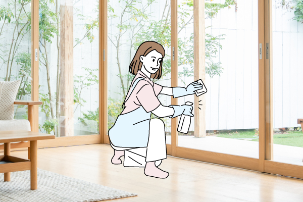 窓を拭くときに立ったりしゃがんだりするだけでも、太ももを中心に脚まわりの大きな筋肉が自然に動くのでスクワット効果が♪