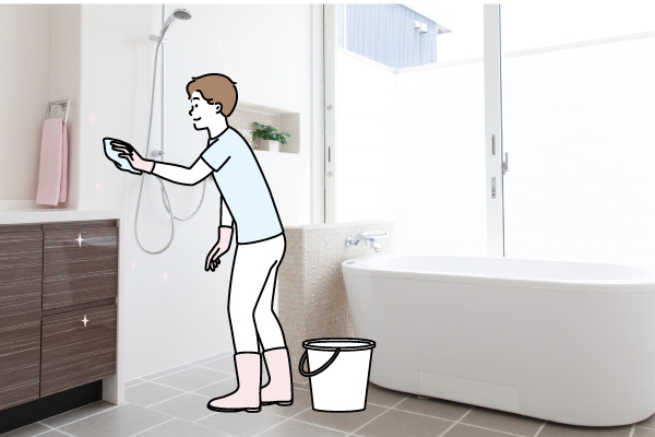 壁や天井を拭いたり、浴槽の汚れをこすったりと足腰を中心に全身の筋肉をバランス良く使えるのでよいトレーニングに。