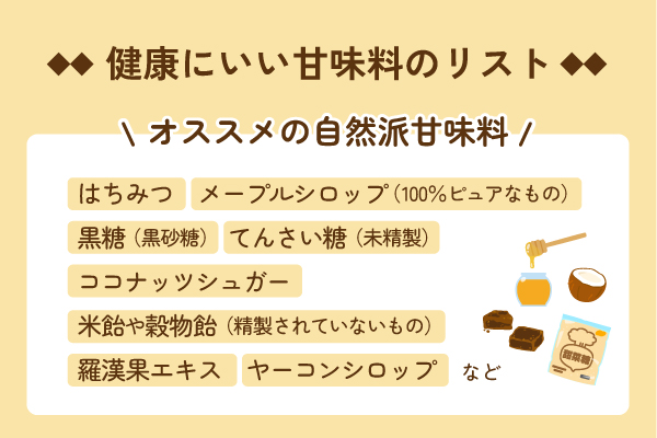 「じゃあ甘いものは一切NG?」と思うかもしれませんが、そんなことはありません。大切なのは、“何を甘味料として選ぶか”です。