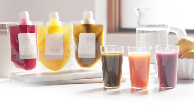 ファスティング専用に開発したコールドプレスジュース。水溶性食物繊維が善玉菌を助け、カラダの環境を整えます。5〜7種類の果物・野菜をたっぷり使い、酵素やビタミンなどの栄養素を壊さないよう、摩擦熱をかけずに抽出しました。フレッシュな美味しさをお楽しみください。